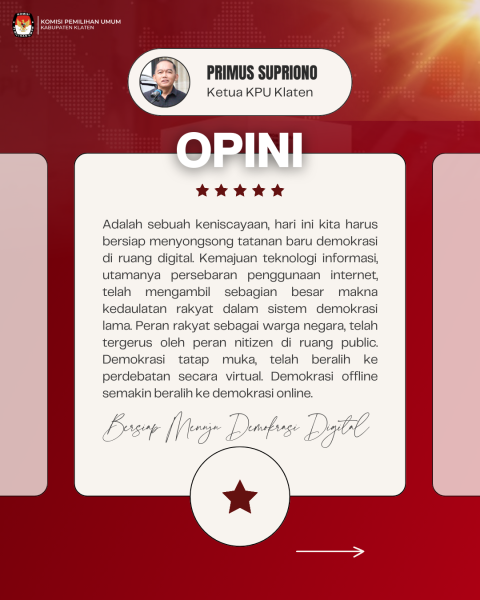 SURAT SUARA TIDAK SAH PILKADA, SALAH SIAPA? Oleh Primus Supriono*) Hingga hari ini, demokrasi diyakini sebagai bentuk pemerintahan negara yang paling ideal untuk mewujudkan kedaulatan, keadilan, dan kesejahteraan rakyat. Bentuk pemerintahan negara demokrasi dianut secara luas hampir meliputi semua negara di dunia termasuk Indonesia. Menurut Freedom House (2009), saat ini tidak kurang dari 123 negara demokrasi elektoral di dunia. Terselenggaranya Pemilu dan Pilkada merupakan ciri utama negara demokrasi. Kita memang pantas bangga, Indonesia menjadi negara demokrasi terbesar ketiga di dunia di bawah India dan Amerika Serikat. Sejak 1955 Indonesia telah menyelenggarakan 13 kali Pemilu, dan sejak 2005 telah menyelenggarakan Pilkada secara langsung. Namun demikian, terselenggaranya Pemilu dan Pilkada yang teratur dan terus-menerus itu haruslah selalu dievaluasi untuk meningkatkan kualitas demokrasi demi menjamin terwujudnya kedaulatan, keadilan, dan kesejahteraan rakyat sebagaimana dimaksud melalui demokrasi. Bersama dengan 37 provinsi, 415 kabupaten, dan 93 kota seluruh Indonesia, KPU Kabupaten Klaten menyelenggarakan Pilkada Serentak Tahun 2024. Pada Pilkada Klaten itu diikuti oleh tiga pasangan calon. Paslon Bupati dan Wakil Bupati nomor urut 1 H. Yoga Hardaya, SH, MH dan Hj. Sova Marwati, SS, paslon nomor urut 2 Drs. W. Herry Wibowo, MH dan Wahyu Adhi Dermawan, S.Sos, MM, serta paslon nomor urut 3 Hamenang Wajar Ismoyo, SI.Kom dan H. Benny Indra Ardhianto, SE, MBA. Dengan mengusung semangat Pilkada inklusif, tingkat partisipasi pemilih pada Pilkada Klaten 2024 sebesar 81,64 persen (794.392 orang). Dari jumlah pengguna hak pilih tersebut terdapat suara tidak sah sebesar 5,5 persen (43.655 orang). Selama cara pemilihan masih dilakukan secara manual atau dengan cara mencoblos (baca: bukan dengan cara e-voting), maka surat suara tidak sah adalah gejala yang tidak dapat dihindarkan. Namun demikian, terlepas wajar atau tidaknya angka surat suara tidak sah itu, hendaklah dilakukan analisis guna mengungkap faktor penyebabnya, dan siapa yang paling bertanggung jawab. Dan yang terpenting, dari analisis ini dapat digunakan untuk memperbaiki kualitas demokrasi pada pelaksanaan Pilkada yang akan datang. Kriteria Surat Suara Tidak Sah Ada tujuh kriteria surat suara tidak sah. Pertama, surat suara yang ketiga paslon dicoblos semua sebesar 71,41 persen (31.174 orang). Kedua, surat suara yang ketiga paslon tidak dicoblos semua sebesar 18,24 persen (7.964 orang). Ketiga, surat suara yang dicoblos lebih dari satu sebesar 4,88 persen (2.130 orang). Keempat, surat suara yang dicoblos di luar kotak sebesar 3,22 persen (1.404 orang). Kelima, surat suara yang diberi tanda dengan cara dibakar sebesar 0,5 persen (219 orang). Keenam, surat suara yang diberi coretan atau tulisan sebesar 0,13 persen (55 orang). Dan ketujuh, surat suara yang diberi tempelan berupa stiker atau tanda tidak sah lainnya sebesar 1,52 persen (709 orang). Ada faktor teknis dan nonteknis yang menyebabkan terjadinya surat suara tidak sah. Faktor teknis antara lain kerumitan tata cara mencoblos dan desain surat suara, serta kurang baiknya kualitas bahan surat suara yang digunakan. Tata cara mencoblos yang kurang sederhana bagi kelompok pemilih rentan atau berkebutuhan khusus dapat menyebabkan terjadinya surat suara tidak sah. Desain surat suara yang terlalu kecil dengan warna-warna yang kurang kontras, memperbesar potensi surat suara tidak sah. Sementara itu, kualitas bahan yang kurang tebal dan kuat pada surat suara dapat menyebabkan surat suara rusak atau salah coblos. Berdasarkan kriteria tersebut, faktor teknis yang menyebabkan surat suara tidak sah memang kecil, yaitu hanya sebesar 3,22 persen (1.404 orang). Surat suara yang dicoblos di luar kotak kemungkinan terjadi pada kelompok pemilih disabilitas, lanjut usia, dan pemilih rentan lainnya. Hal ini bisa jadi karena kurang dan lemahnya metode sosialisasi cara menggunakan hak pilih dari penyelenggara Pilkada. Kurangnya pendampingan pemilih rentan dari keluarga dan komunitas dapat memperbesar terjadinya surat suara tidak sah. Angka surat suara tidak sah terbesar lebih disebabkan oleh faktor nonteknis. Sebesar 96,78 persen surat suara tidak sah (42.249 orang) disebabkan oleh faktor nonteknis seperti semua dicoblos, semua tidak dicoblos, dicoblos lebih dari satu, dicoblos dengan cara dibakar, serta diberi coretan dan stiker atau tanda tertentu. Surat suara tidak sah karena faktor nonteknis itu bisa dibaca sebagai bentuk protes para pemilih untuk mengekspresikan sikap politiknya atas paslon yang ada atau proses politik yang menyertainya. Faktor nonteknis lain yang menyebabkan terjadinya surat suara tidak sah bisa jadi akibat kurangnya kesadaran dan literasi politik para pemilih tertentu yang terjadi selama ini. Selain itu, adanya pengaruh pihak-pihak tertentu yang menyebabkan sebagian pemilih melakukan tindakan yang mengakibatkan surat suara tidak sah. Paslon yang tidak dikenali dengan baik oleh pemilih, serta visi misi dan program kerja yang kurang menjawab tantangan strategis dan kebutuhan riil masyarakat barangkali menjadi faktor utama terjadinya surat suara tidak sah. Apatisme, kebosanan, dan kurangnya literasi tentang pentingnya partisipasi politik melalui penggunaan hak pilih pada Pilkada turut memperbesar surat suara tidak sah. Catatan dan Rekomendasi Ada beberapa catatan dan rekomendasi untuk mengurangi kecenderungan surat suara tidak sah pada Pilkada yang akan datang. Secara teknis, kualitas kertas surat suara yang digunakan perlu semakin ditingkatkan baik ketebalan maupun kekuatannya. Hal ini dimaksudkan agar surat suara tidak mudah rusak atau tercoblos oleh kuku, cincin, dan sebagainya. Ukuran surat suara perlu diperbesar dengan lipatan yang sederhana. Hal ini agar pemilih, terutama pemilih rentan mudah menggunakan hak pilihnya. Desain surat suara juga perlu diperbaiki baik dari sisi ukuran huruf, kerumitan, maupun penggunaan warnanya. Hal ini dimaksudkan agar pemilih lebih mudah meng