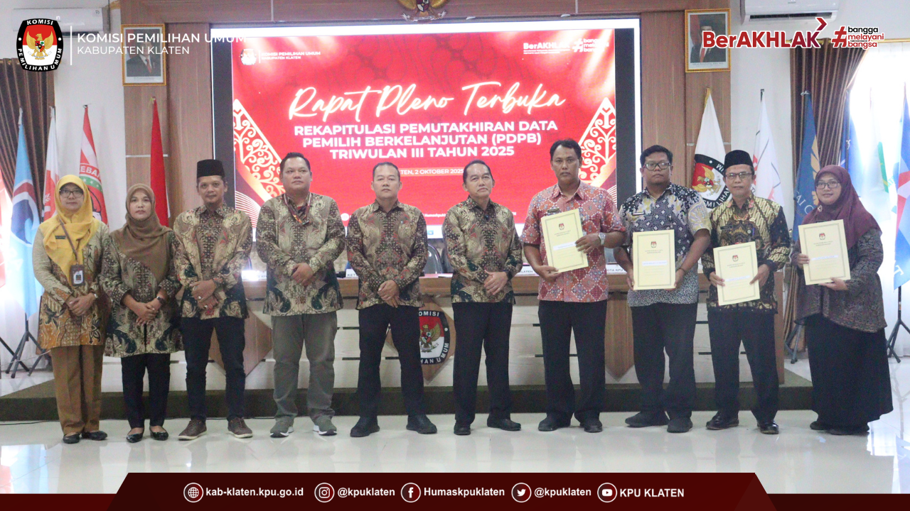 KPU Klaten Gelar Rapat Pleno Terbuka Rekapitulasi Pemutakhiran Data Pemilih Berkelanjutan (PDPB) Triwulan III Tahun 2025