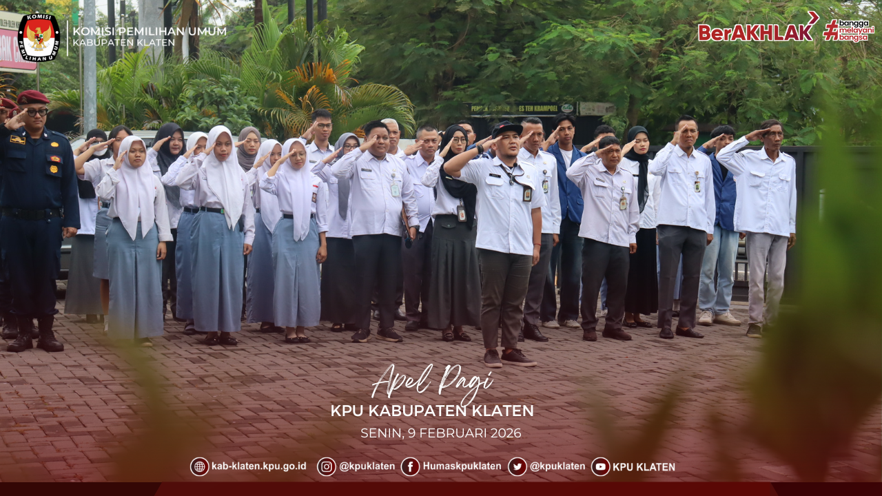 Klaten, 9 Februari 2026 – #temanpemilih Pernyataan itu mengemuka saat Apel Pagi KPU Klaten pada Senin (9/2/2026), yang diikuti Ketua, Anggota, Sekretaris, Kasubbag, seluruh staf sekretariat, serta para siswa PKL dan mahasiswa magang. Dalam amanatnya, Sekretaris KPU Klaten, Ika Nurmaliana Dewi selaku pembina apel mengatakan, untuk menjaga keseimbangan dalam menjalani kehidupan yang harmonis, stabil, dan bahagia, kita haruslah selalu bergerak.
