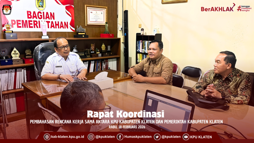 Melalui rapat koordinasi ini, diharapkan terbangun kesepahaman dan keselarasan langkah antara KPU Klaten dan Pemerintah Kabupaten Klaten, sehingga setiap program dan kegiatan kepemiluan dapat terlaksana secara optimal, akuntabel, dan berintegritas.***(vit)