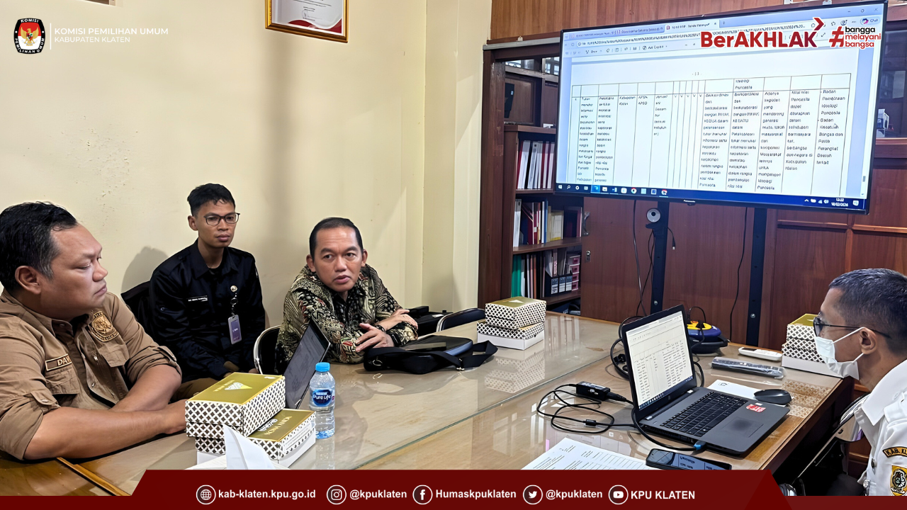 Rapat Koordinasi KPU Klaten bersama Bagian Pemerintahan Kabupaten Klaten, Rabu (18/2).