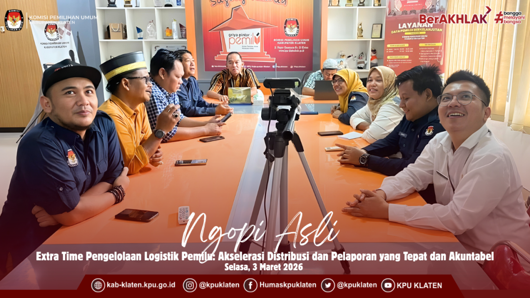 KLATEN - #temanpemilih KPU Klaten mengikuti kegiatan NGOPI ASLI (Ngobrol Pintar Arsip dan Logistik) yang diselenggarakan oleh KPU Provinsi Jawa Tengah melalui Zoom Meeting, Selasa (3/3).