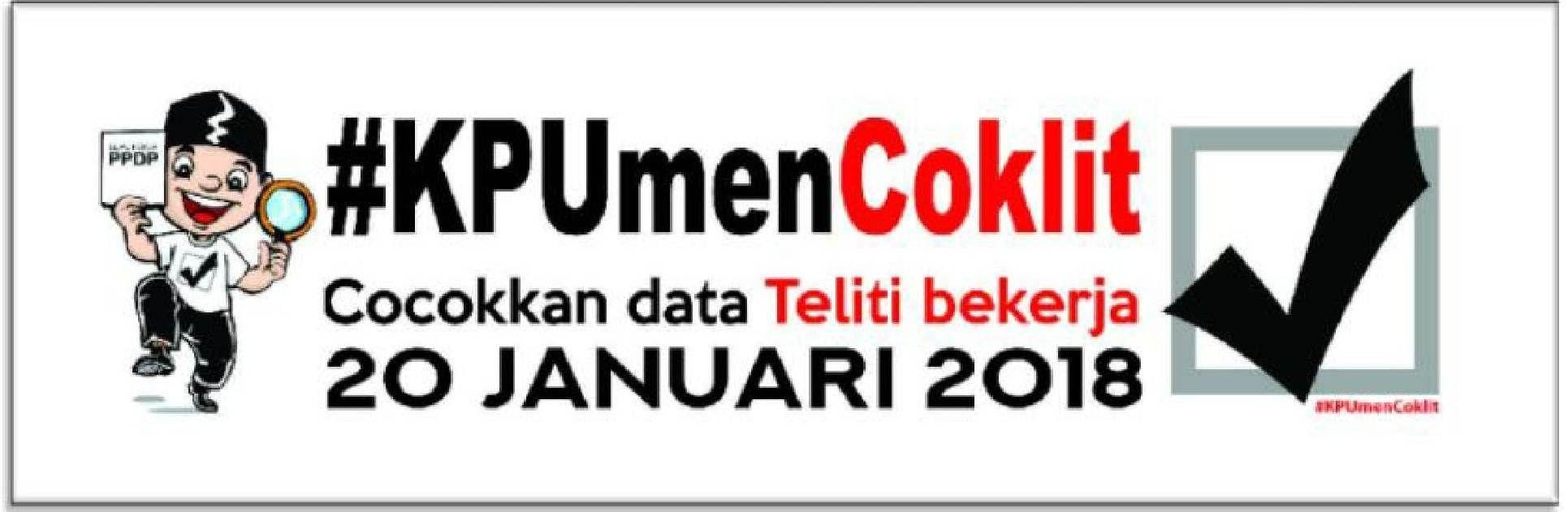 Adapun tahapan Coklit ini dilaksanakan pada tanggal 20 Januari sampai dengan 18 Februari 2018, dengan diawali gerakan “COKLIT SERENTAK”. Pada pelaksanaan gerakan coklit serentak ini nanti seluruh jajaran penyelenggara (mulaidari KPU,PPK,PPS) secara bersama-sama melakukan pendampingan terhadap Petugas Pemutakhiran Data Pemilih (PPDP) dalam melakukan pemutakhiran data pemilih dengan mendatangi rumah ke rumah.