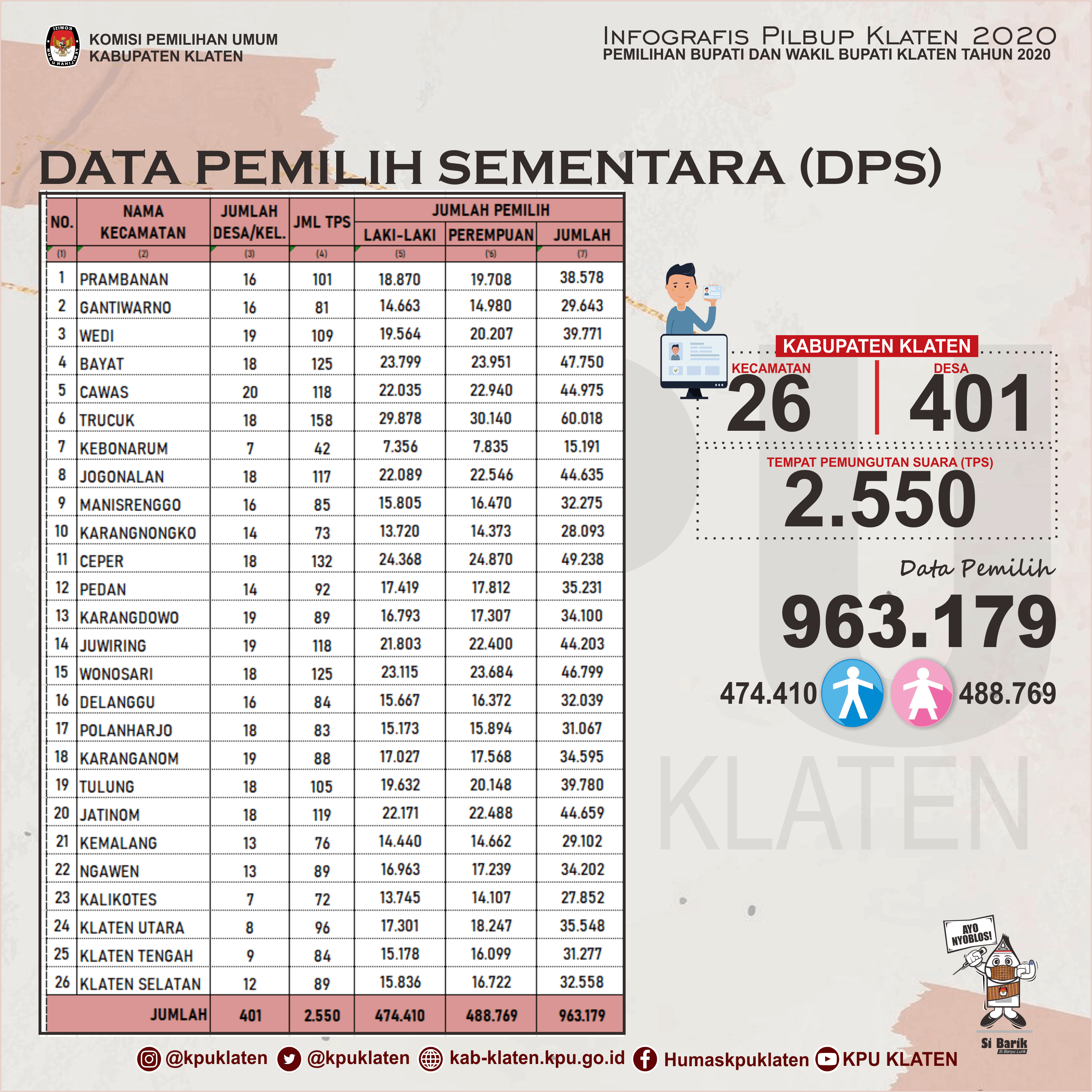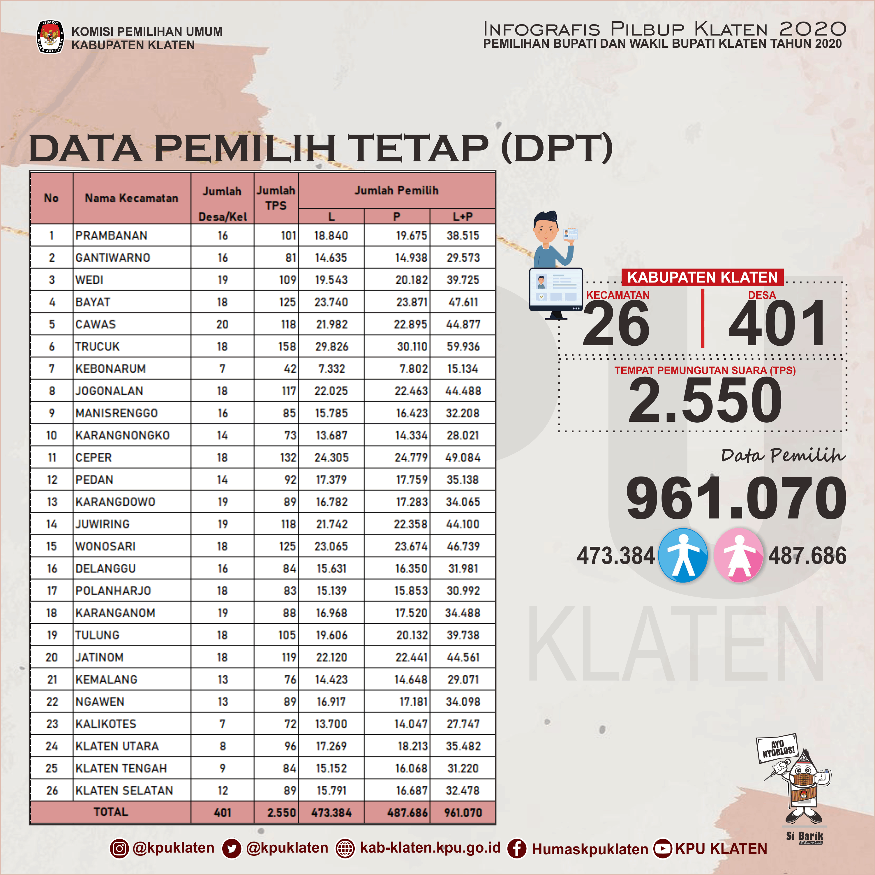 Infografis Data Pemilih Dalam Pemilihan Bupati dan Wakil Bupati Klaten Tahun 2020