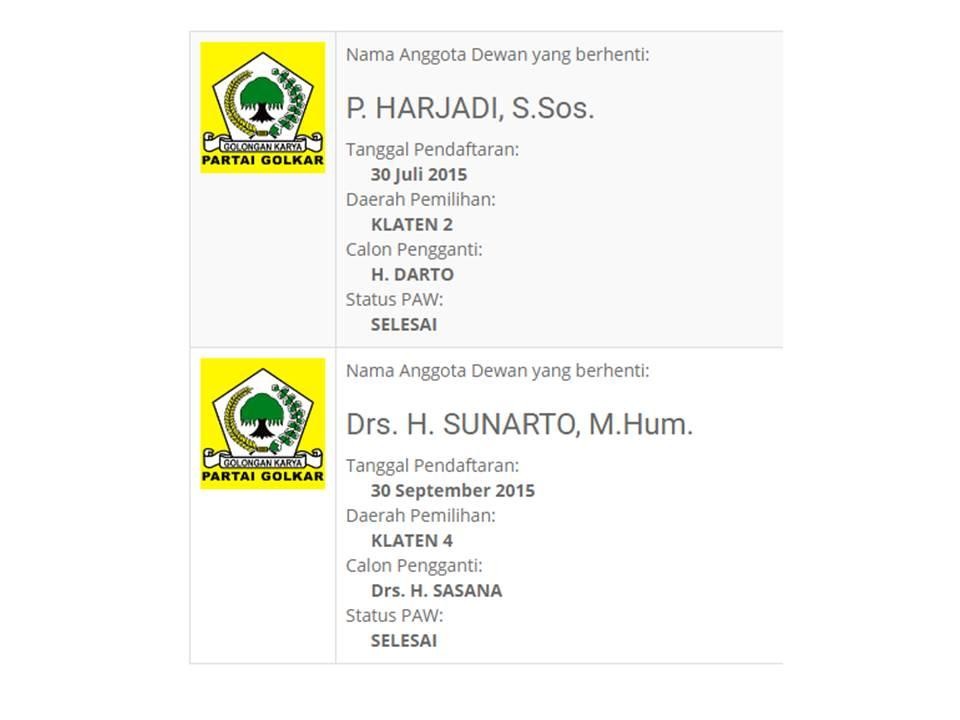 INFORMASI PENGGANTIAN ANTAR WAKTU (PAW) ANGGOTA DPRD KABUPATEN KLATEN
