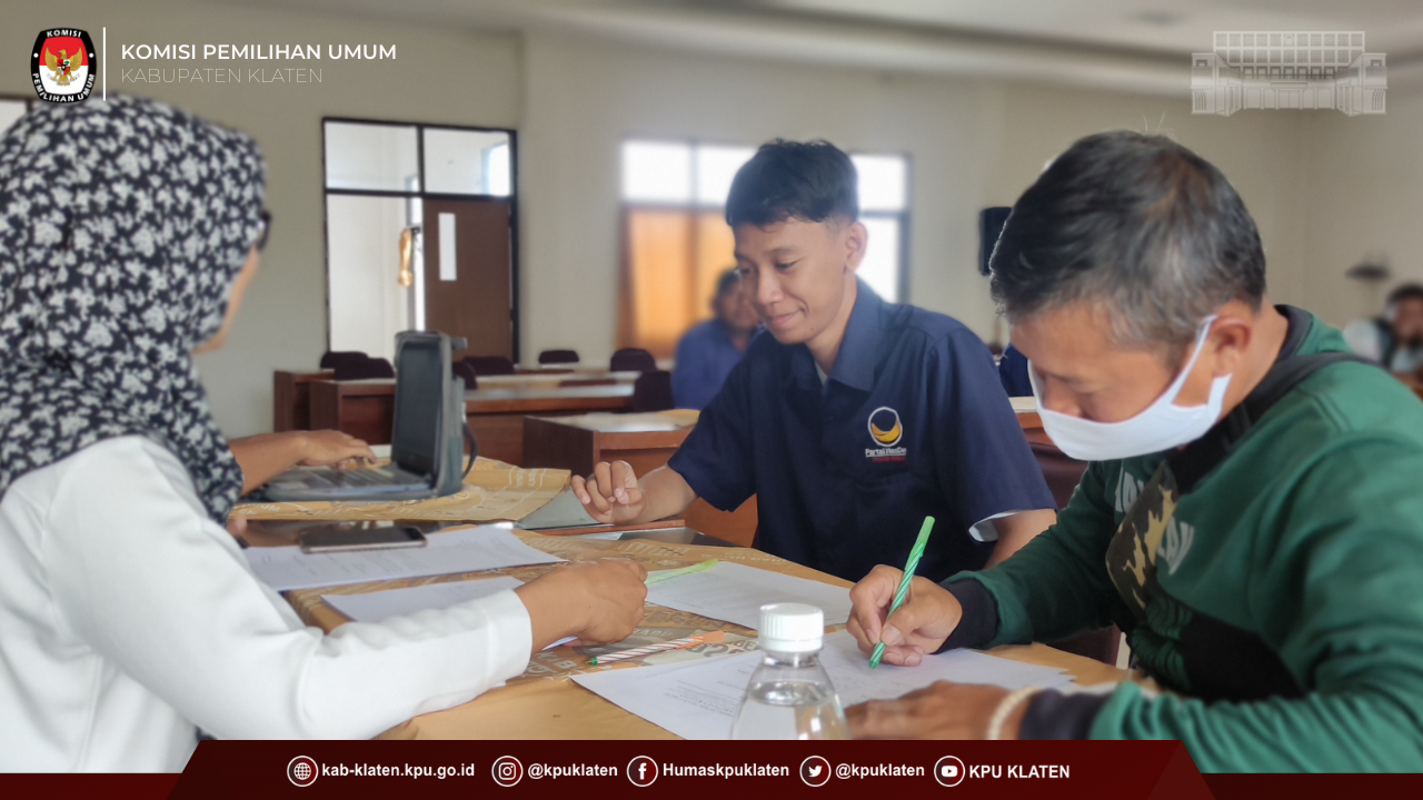Senin (05/09/2022) - KPU Kabupaten Klaten melaksakan tahapan Klarifikasi secara langsung terhadap Anggota Partai Politik yabg belum dapat ditentukan status keanggotaan sebagai partai Politik " Partai NasDem".