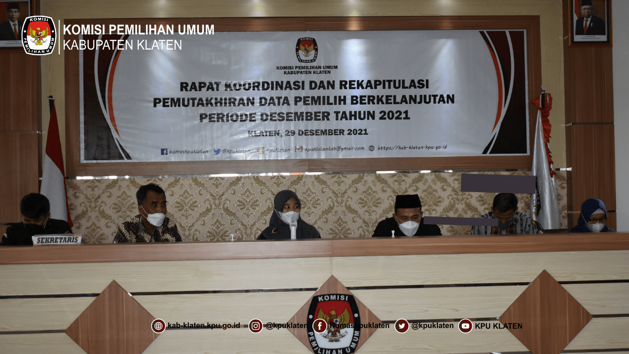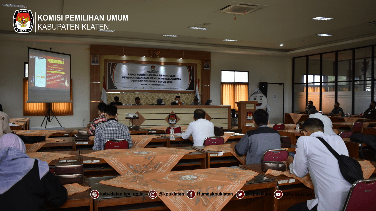 Klaten - Rabu (29/12) Komisi Pemilihan Umum Kabupaten Klaten menggelar Rapat Koordinasi dan Rekapitulasi Pemutakhiran Data Pemilih Berkelanjutan Periode Bulan Desember 2021.