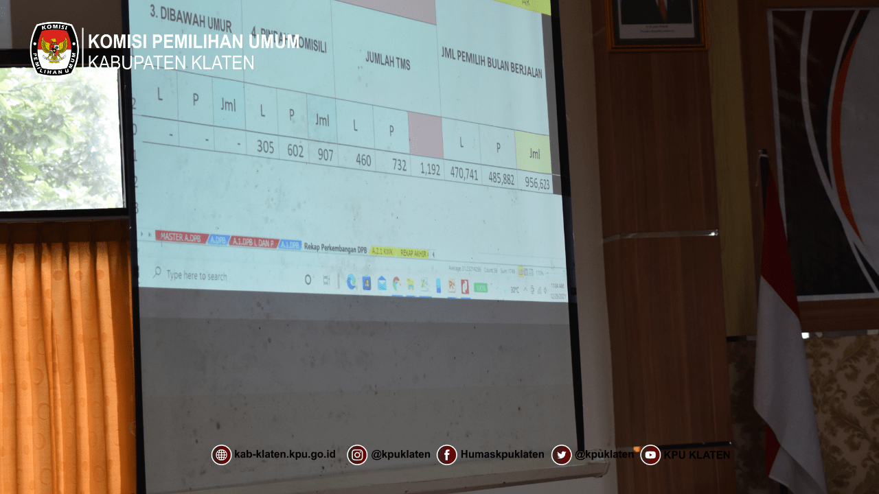 Rapat Koordinasi dibuka oleh ketua KPU Kabupaten Klaten Ibu Kartika Sari Handayani,S.E., M.Si. dalam rapat tersebut dihadiri oleh Bawaslu, Kodim 0273 Klaten, Kejaksaan, Dukcapil, Kajari dan Partai Politik Kabupaten Klaten. Rapat digelar dengan tetap mematuhi protokol kesehatan. Sebagai Narasumber dalam Rapat Koordinasi dan Rekapitulasi Pemutakhiran Data Pemilih Berkelanjutan Periode Bulan Desember 2021 bapak Syamsul Ma'arif,S.Pd.I. beliau sebagai Ketua Divisi Perencanaan Data dan Informasi KPU Kabupaten Klaten beliau menyampaikan bahwa Rekapitulasi Daftar Pemilih Berkelanjutan pada bulan Desember dengan jumlah sebanyak 956.623 Pemilih dengan rincian pemilih laki-laki berjumlah 470.741 pemilih dan pemilih perempuan berjumlah 485.882 pemilih, tersebar di 26 (Dua Puluh Enam) Kecamatan.
