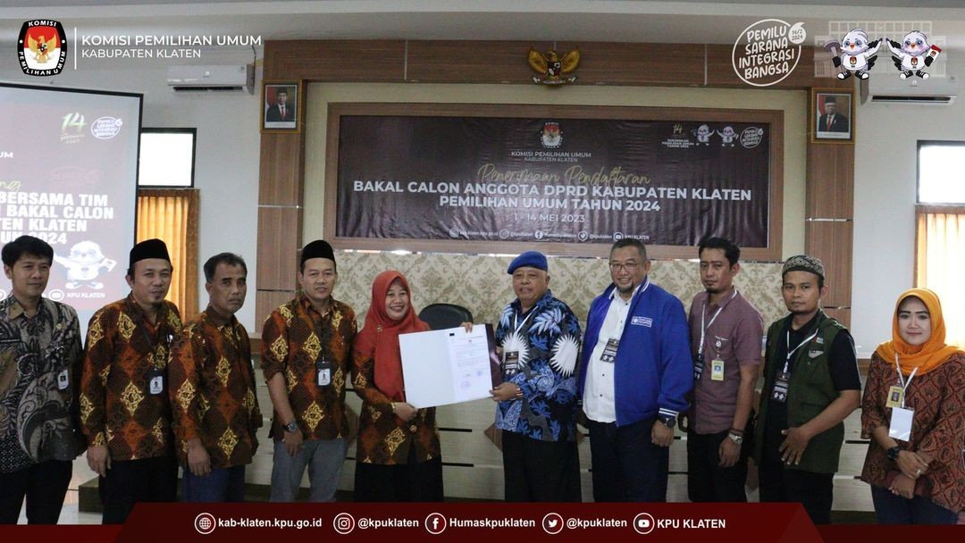 #TemanPemilih (12/05) KPU Kabupaten Klaten menerima pengajuan Bakal Calon Anggota DPRD Partai Amanat Nasional (PAN) Kabupaten Klaten dalam Pemilu Tahun 2024 di Kantor KPU Kabupaten Klaten. Pengajuan dilakukan oleh Ketua Dewan Pimpinan Daerah (DPD) Partai Amanat Nasional (PAN) Kabupaten Klaten beserta TIM dan Bakal Calon dari Partai Amanat Nasional (PAN) .
