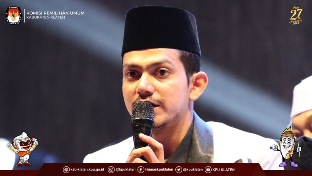 #TemanPemilih KLATEN - Komisi Pemilihan Umum Kabupaten Klaten menyelenggarakan kegiatan KPU Klaten Bersholawat dalam rangka Sosialisasi dan Do'a Bersama untuk Pemilihan Gubernur dan Wakil Guberur Jawa Tengah serta Bupati dan Wakil Bupati Klaten Tahun 2024, Senin (25/11). Kegiatan yang berlangsung di Alun-Alun Klaten ini menghadirkan Habib Muhammad Zaidan Bin Yahya dari Pekalongan. Sejumlah tamu undangan hadir dalam kegiatan tersebut, diantaranya Bupati Klaten, Hj. Sri Mulyani, SM beserta jajaran forkopimda, Kepala Dinas/Instansi, Organisasi Kemasyarakatan dan Organisasi Keagamaan, Perwakilan PPK, serta sejumlah tamu undangan.