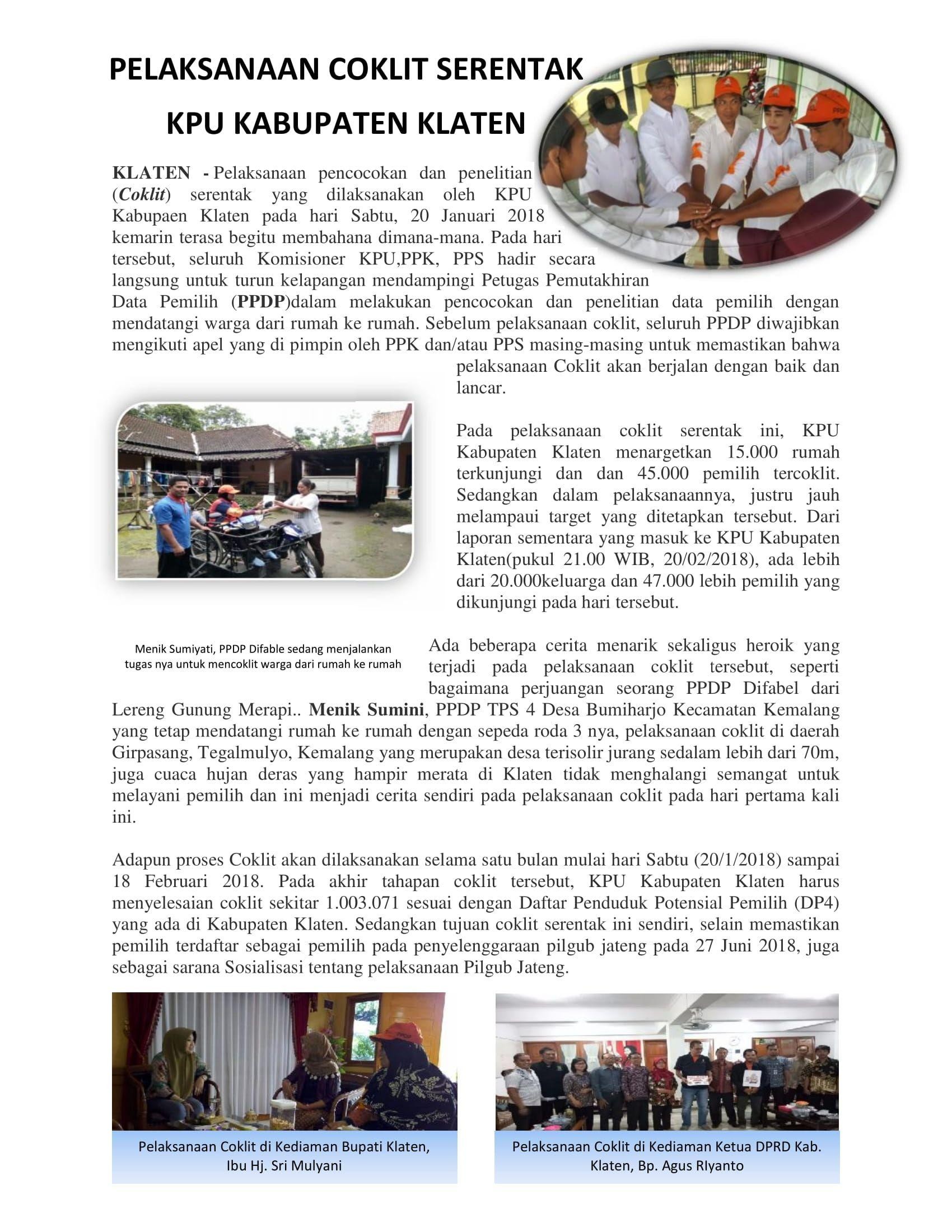 PELAKSANAAN COKLIT SERENTAK KPU KABUPATEN KLATEN