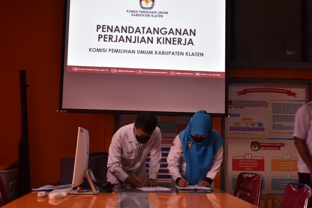 #sahabatpemilih KPU Kabupaten Klaten melaksanakan Penandatanganan Kinerja anatara Komisioner KPU dengan Sekretaris KPU Kabupaten Klaten yang dilaksanakan pada hari ini Kamis 27 Januari 2022.