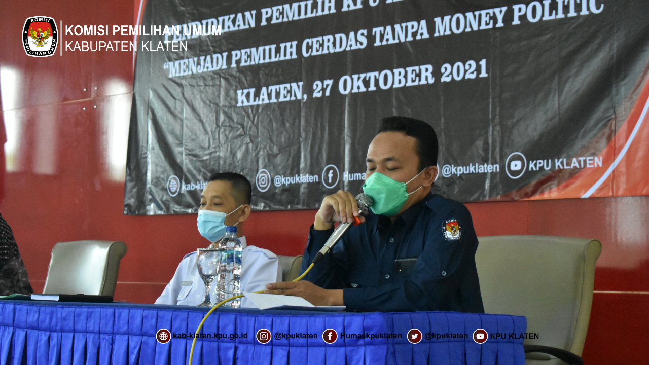 Kegiatan pendidikan pemilih merupakan tindak lanjut surat KPU RI nomor 515/PP.06-SD/06/KPU/VI/2021 tentang Fasilitasi Pendidikan Pemilih Tahun 2021. Dengan adanya kegiatan tersebut bertujuan mewujudkan Pemilu dan Pemilihan yang bermartabat. Kegiatan tersebut dilaksanakan dengan mematuhi protok kesehatan.