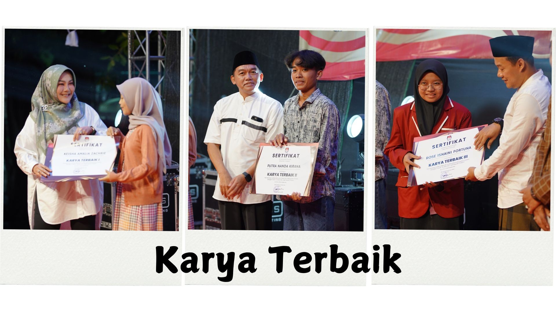 Selanjutnya penghargaan untuk Karya Terbaik II oleh PUTRA NANDA KIRANA, diserahkan oleh Ketua KPU Klaten, Primus Supriono. Penghargaan untuk Karya Terbaik III oleh ROSE ISNAINI FORTUNA, diserahkan oleh Anggota KPU, Samsul Huda.