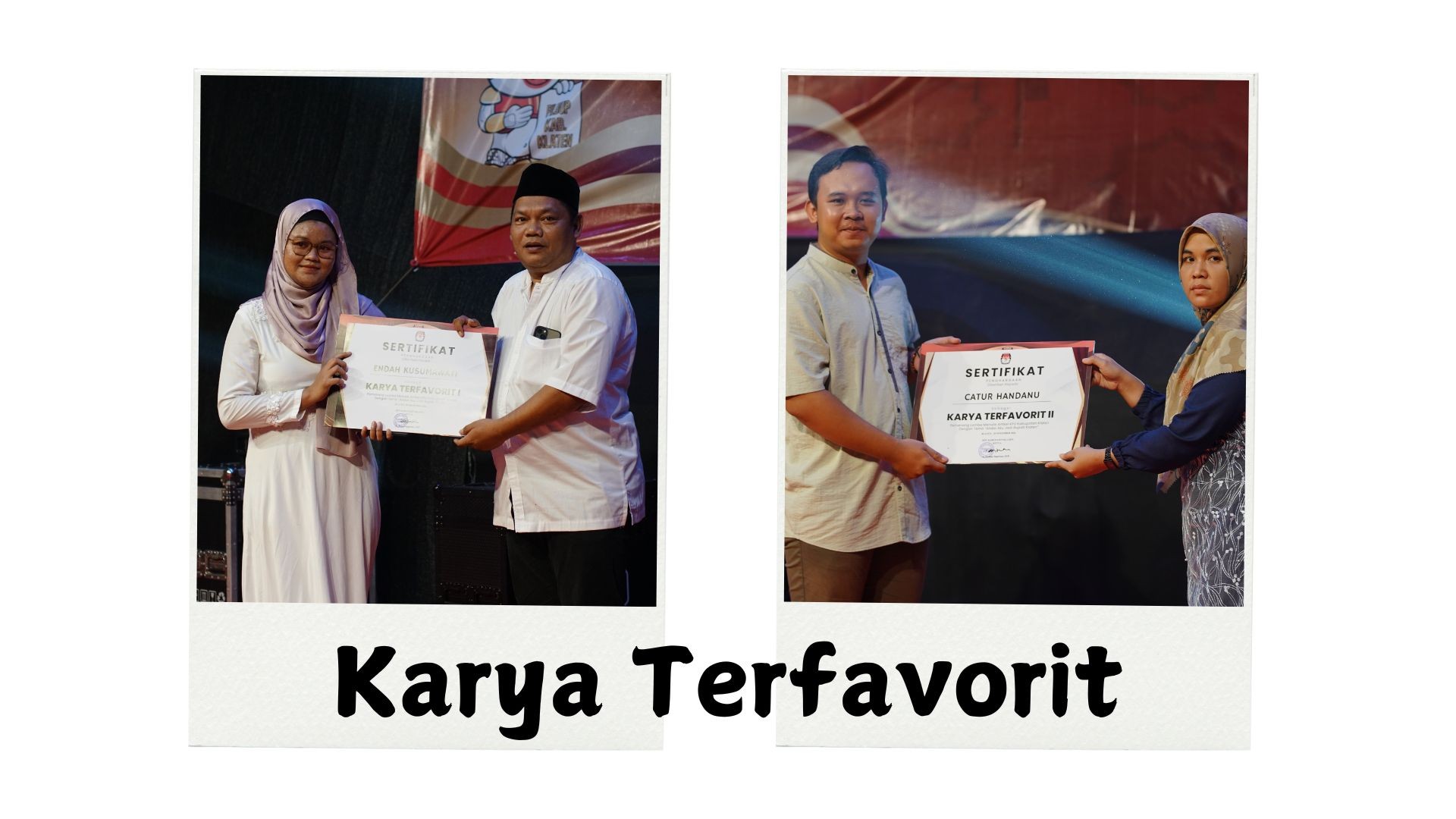 Kategori selanjutnya, penghargaan terhadap Karya Terfavorit I oleh ENDAH KUSUMAWATI, diserahkan oleh Anggota KPU David Indrawan, sedangkan karya terfavorit II oleh CATUR HANDANU diserahkan oleh Anggota KPU Herlis Setiyanik. Kategori terakhir adalah penghargaan terhadap karya terpilih, yang dimenangkan oleh DWI NUR LATIFAH, CINTA JULIANA PUTRI, KHOLIFAH PUTRI HANDAYANI, IQBAL RIZA AFGHONI, dan EFRICO IYAN PRATAMA. Penghargaan diserahkan oleh sekretaris KPU Kabupaten Klaten, Ika Nurmaliana Dewi. Kelima karya terpilih ini merupakan karya yang diangkat dalam Debat Putaran Kedua Calon Bupati dan Wakil Bupati Klaten Tahun 2024, pada segmen ke-empat, Tanggapan Atas Artikel dari Pelajar dan Mahasoswa Klaten. Pada sesi tersebut, pertanyaan diambil dari sinopsis Lomba Karya Ilmiah pelajar dan mahasiswa Klaten yang diselenggarakan oleh KPU Klaten. Pertanyaan dipilih secara acak melalui fish ball oleh masing-masing pasangan calon Bupati dan Wakil Bupati Klaten Tahun 2024.