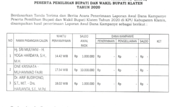 Laporan Awal Dana Kampanye (LADK) Peserta Pemilihan Bupati dan Wakil Bupati Klaten Tahun 2020