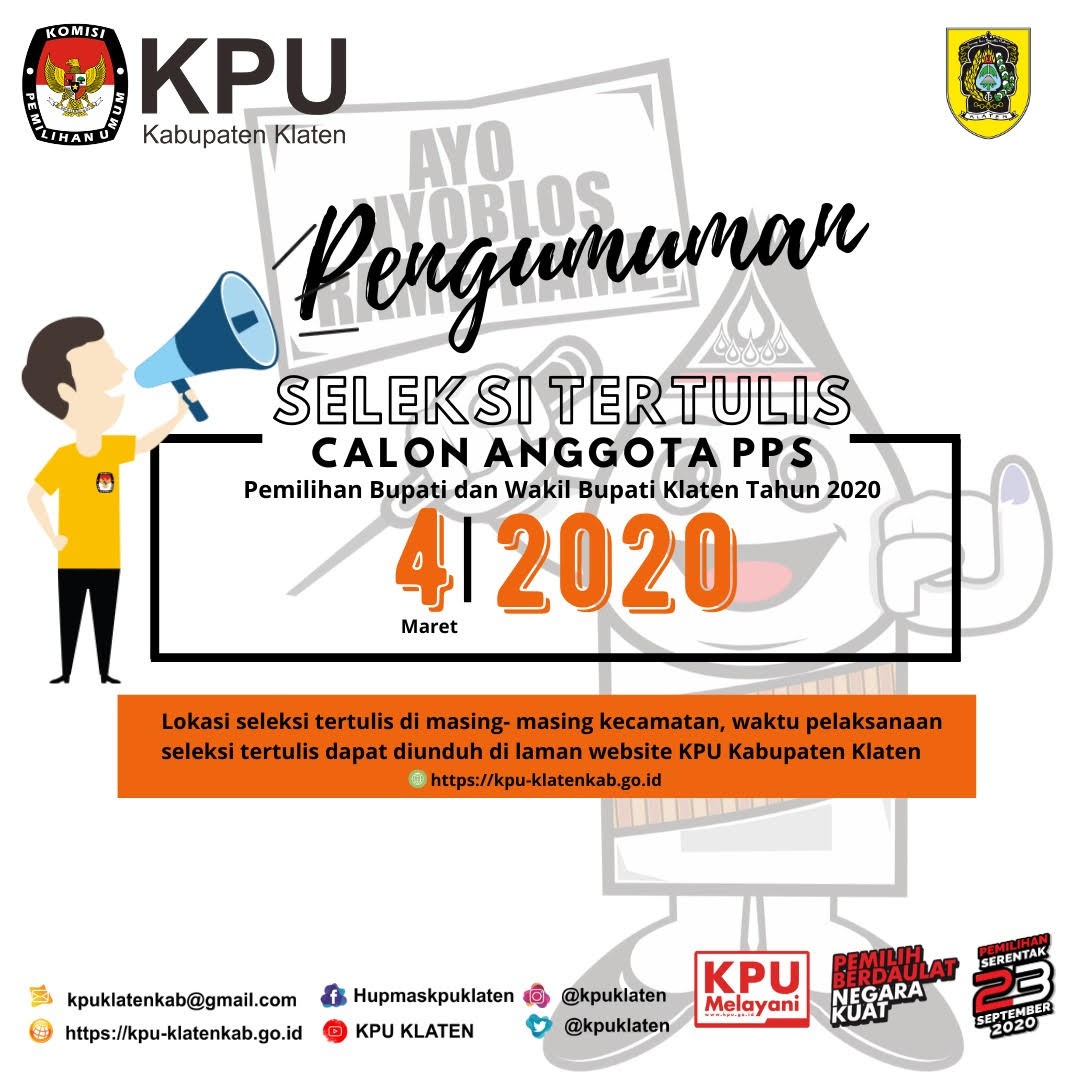 Pengumuman Hasil Seleksi Administrasi Calon Anggota PPS Pilbup Klaten 2020 dapat dilihat dan diunduh [disini]