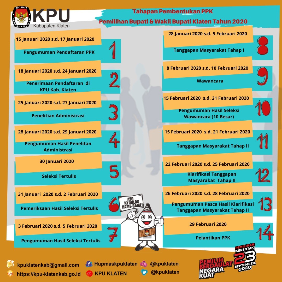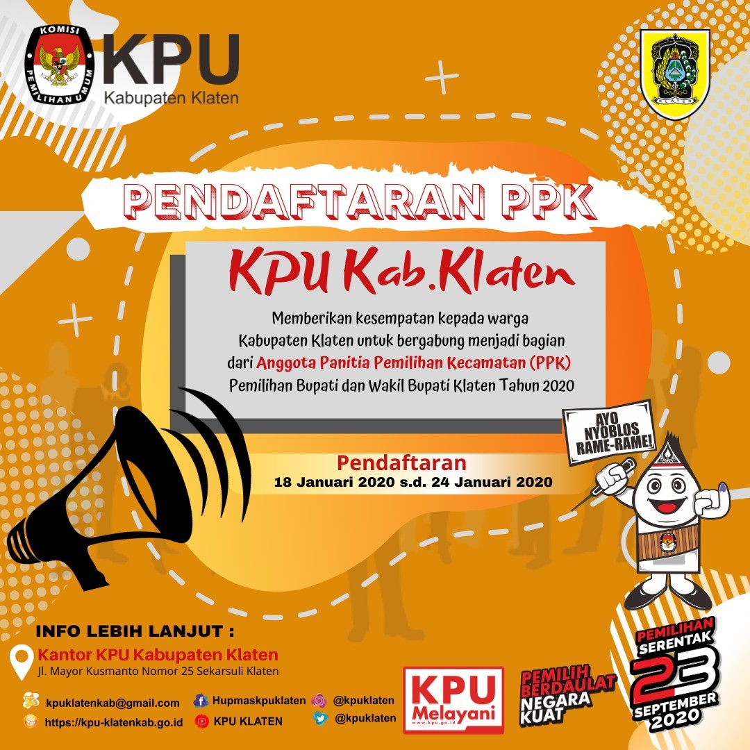 PENGUMUMAN SELEKSI CALON ANGGOTA PPK PEMILIHAN BUPATI & WAKIL BUPATI KLATEN KLATEN 2020