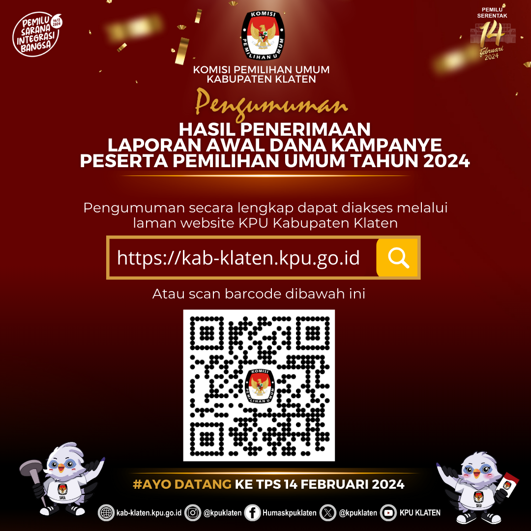 PENGUMUMAN TENTANG HASIL PENERIMAAN LAPORAN AWAL DANA KAMPANYE PESERTA PEMILIHAN UMUM TAHUN 2024
