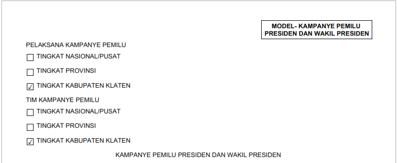 PENGUMUMAN TIM KAMPANYE PEMILU PRESIDEN DAN WAKIL PRESIDEN TINGKAT KABUPATEN KLATEN PADA PEMILU 2024 dapat diakses disini