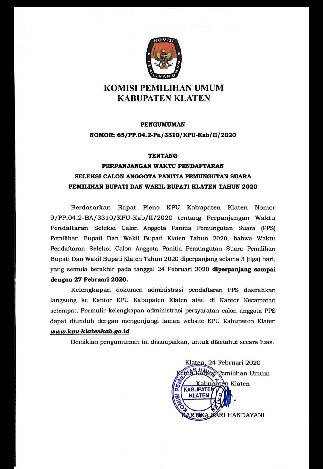 PERPANJANGAN PENDAFTARAN PPS PILBUP 2020