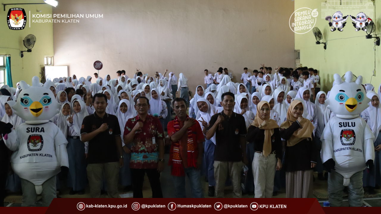 kegiatan ketiga Sosialisasi Bendera Parpol Peserta Pemilu 2024, Tahapan Pemilu dan Pendidikan Pemilih Pemilu 2024 di Kecamatan Karangdowo bertempat di SMA N 1 Karangdowo.KPU Kabupaten Klaten melaksanakan kegiatan Sosialisasi Pendidikan Pemilih dengan narasumber dari KPU Kabupaten Klaten dan PPK Karangdowo, kegiatan dihadiri oleh siswa siswi kelas XII dengan jumlah kurang lebih 300 siswa, anusias siswa siswi terlihat dari banyaknya yang menjawab pertanyaan yang dilontarkan oleh narasumber. Kegiatan dilanjutkan dengan pembagian leaflet Yang berisi 5 macam informasi yaitu Ayo sukseskan Pemilu 2024, Cek DPT ON Line, Tata Cara Pindah Memilih, Penetapan daerah Pemilihan dan Alokasi Kursi, Lambang dan Nomor Urut Partai Politik Peserta Pemilu 2024 sebanyak 100 lembar dan PIN Ayo Sukseskan Pemilu 2024 sebanyak 10 buah.