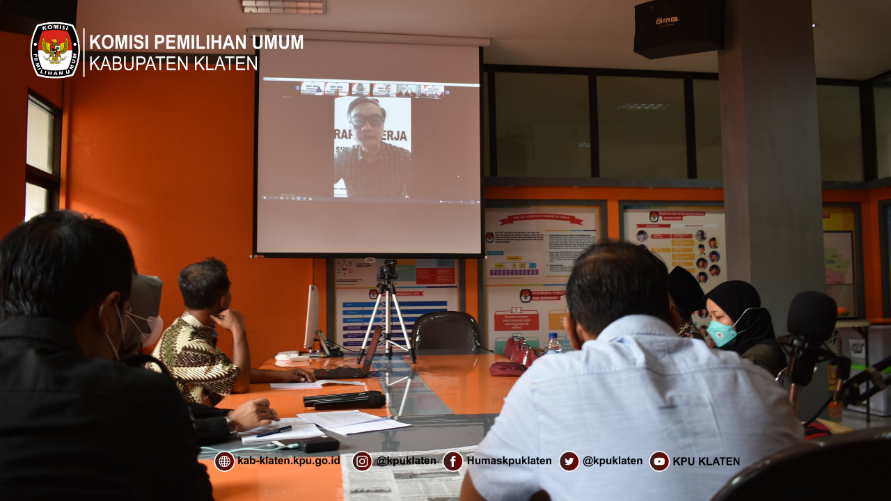 #SahabatPemilih Ketua beserta Anggota KPU Kabupaten Klaten, Sekretaris dan Ksb. Program dan Data KPU Kabupaten Klaten Menghadiri Undangan Rapat Kerja Sinkronisasi RAB Pemilihan Serentak Tahun 2024 yang diselenggarakan oleh KPU Provinsi Jawa Tengah secara Daring. (Rabu,12/01).