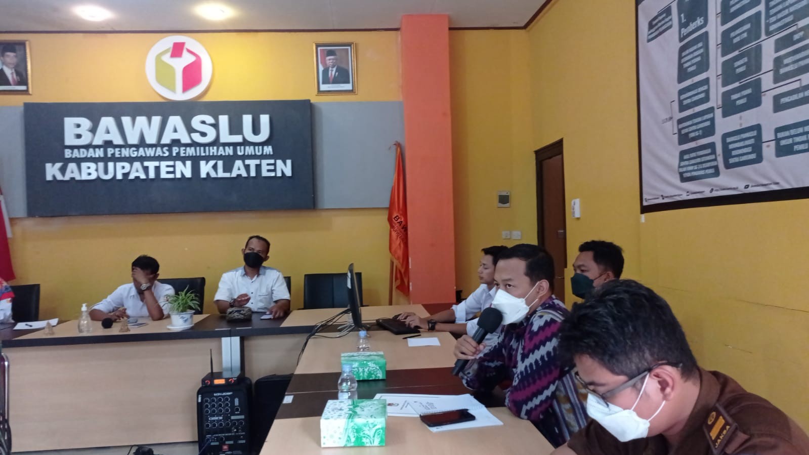 Klaten - Sehubungan dengan akan dimulainya tahapan Pemilu Serentak Tahun 2024, Ketua Divisi Teknis Penyelenggaraan KPU Kabupaten Klaten hadir dalam kegiatan Rapat Koordinasi Persiapan Penanganan Pelanggaran Pemilu, yang diselenggarkan oleh Bawaslu Kabupaten Klaten.