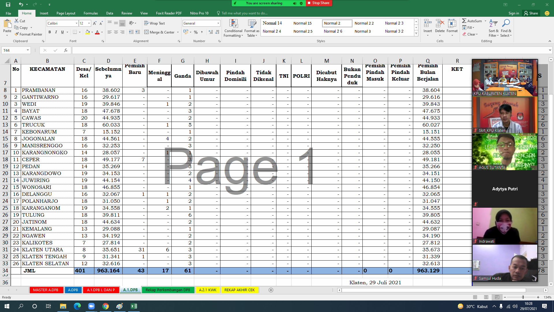 RAPAT PLENO DATA PEMILIH BERKELANJUTAN TAHUN 2021 PERIODE JULI