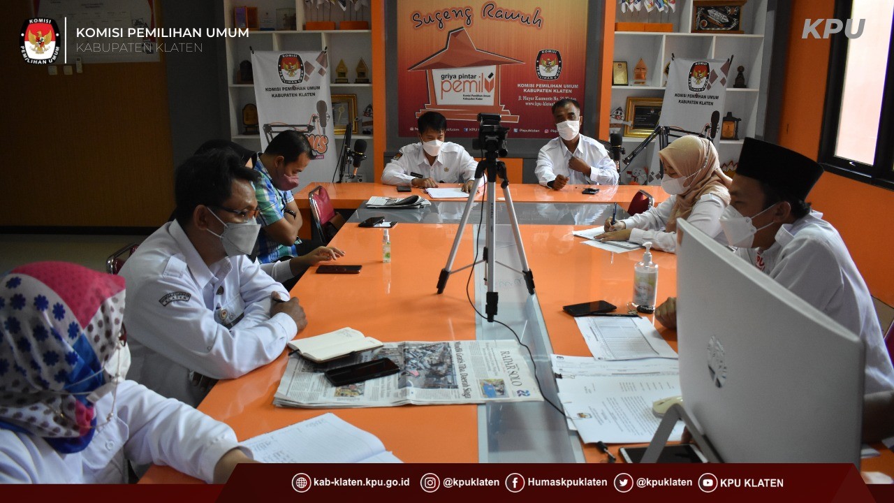 #TemanPemilih KPU Kabupaten Klaten menggelar Rapat Pleno Tentang Pemutakhiran Data Pemilih Berkelanjutan Periode Bulan April Tahun 2022. Rapat tersebut diselenggarakan pada hari Kamis, 28 April 2022 secara luring dengan dihadiri seluruh komisioner KPU Kabupaten Klaten, Sekretaris serta Kasubbag Sekretariat KPU Kabupaten Klaten.