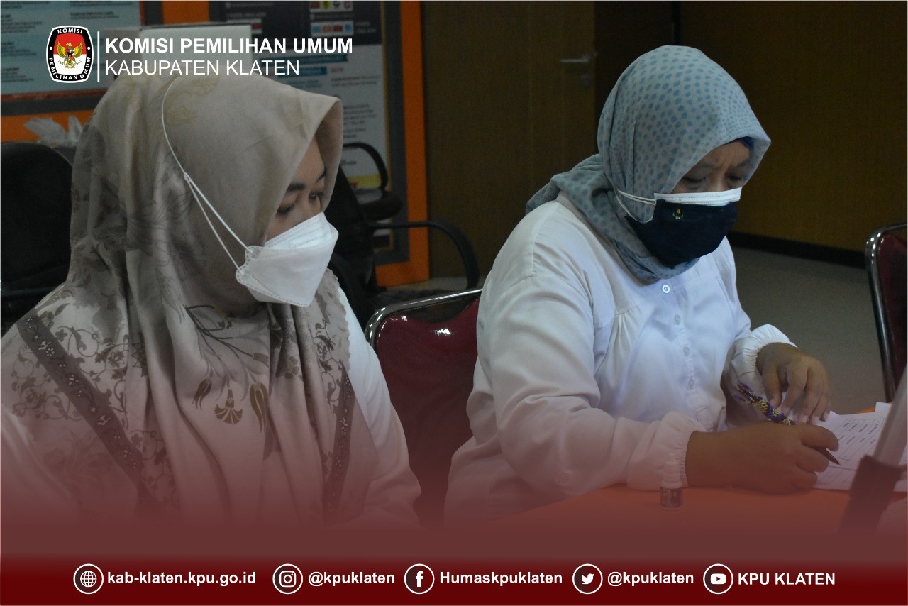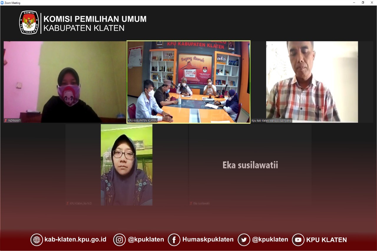 Klaten (5/8) Komisi Pemilihan Umum Kabupaten Klaten melaksanakan Rapat Pleno SPIP, Rapat dipimpin oleh Ketua KPU Kabupaten Klaten Kartika Sari Handayani,S.E., M.Si. dengan diikuti oleh Anggota KPU, Sekertaris dan Kasubbag Sekretariat KPU Kabupaten Klaten. Rapat diselenggarakan melalui daring dan luring dengan memerapkan protokol kesehatan.