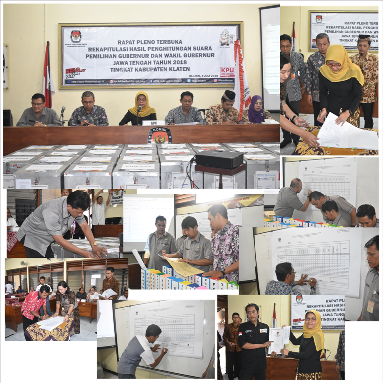 KLATEN – KPU Kabupaten Klaten melaksanakan penghitungan suara Pilgub Jateng 2018 dari setiap kecamatan di Kabupaten Klaten, Rabu, (4/7). Hasil penghitungan suara dapat dilihat disini: