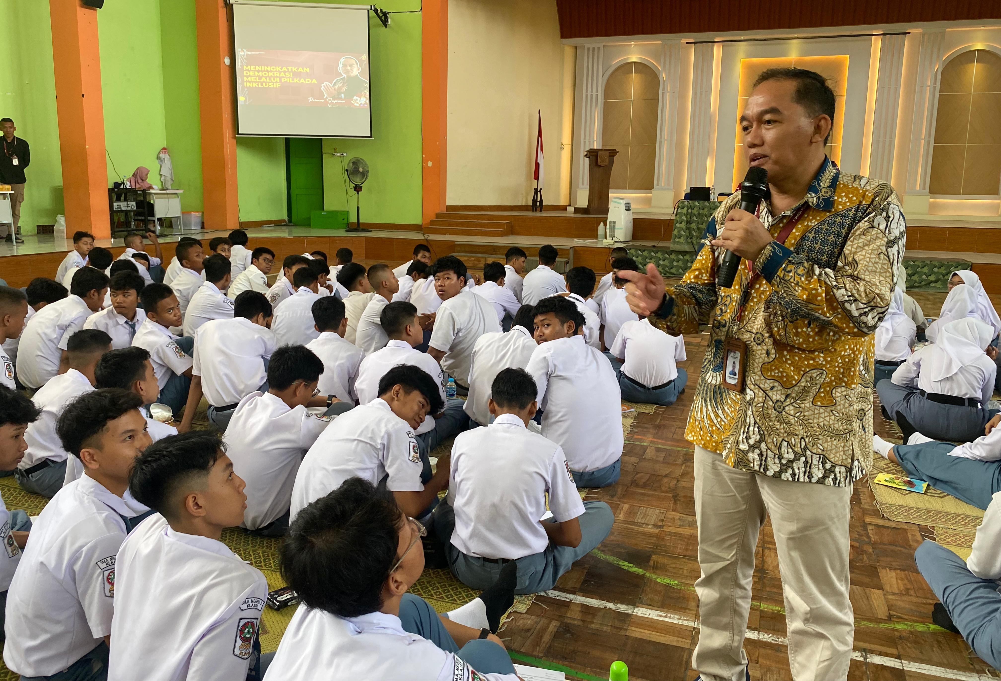 KLATEN - #TemanPemilih KPU Kabupaten Klaten melaksanakan Sosialisasi dan Simulasi Pemilih Pemula dalam Projek Penguatan Profil Pelajar Pancasila (P5) di SMA Negeri 3 Klaten. Acara diawali dengan pembukaan, doa, dan dilanjutkan dengan materi yang disampaikan oleh Ketua KPU kabupaten Klaten. Ketua KPU Kabupaten Klaten, Ir. Primus Suprono, S.TP, menyampaikan materi dengan tema Meningkatkan Demokrasi melalui Pilkada yang inklusif kepada siswa siswi kelas XI SMA N 3 Klaten. Penyampaian materi diawali dengan memberikan pertanyaan kepada siswa siswi tentang sejauh mana mereka memahami makna demokrasi.