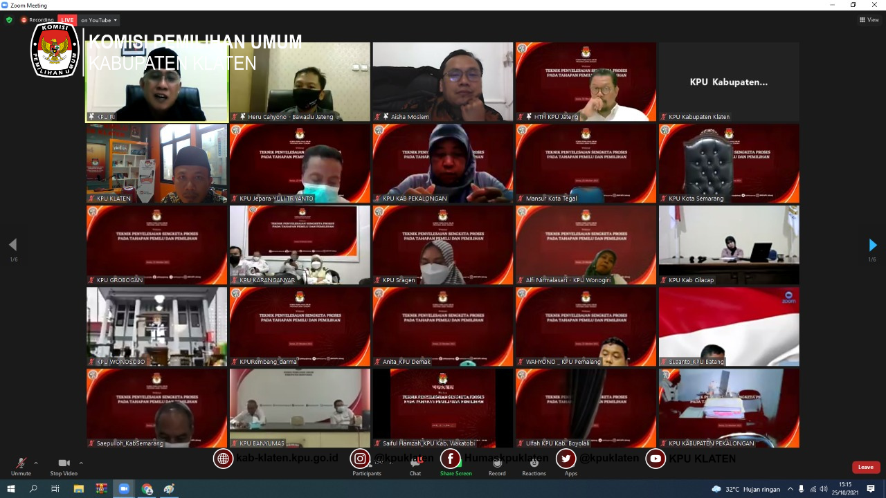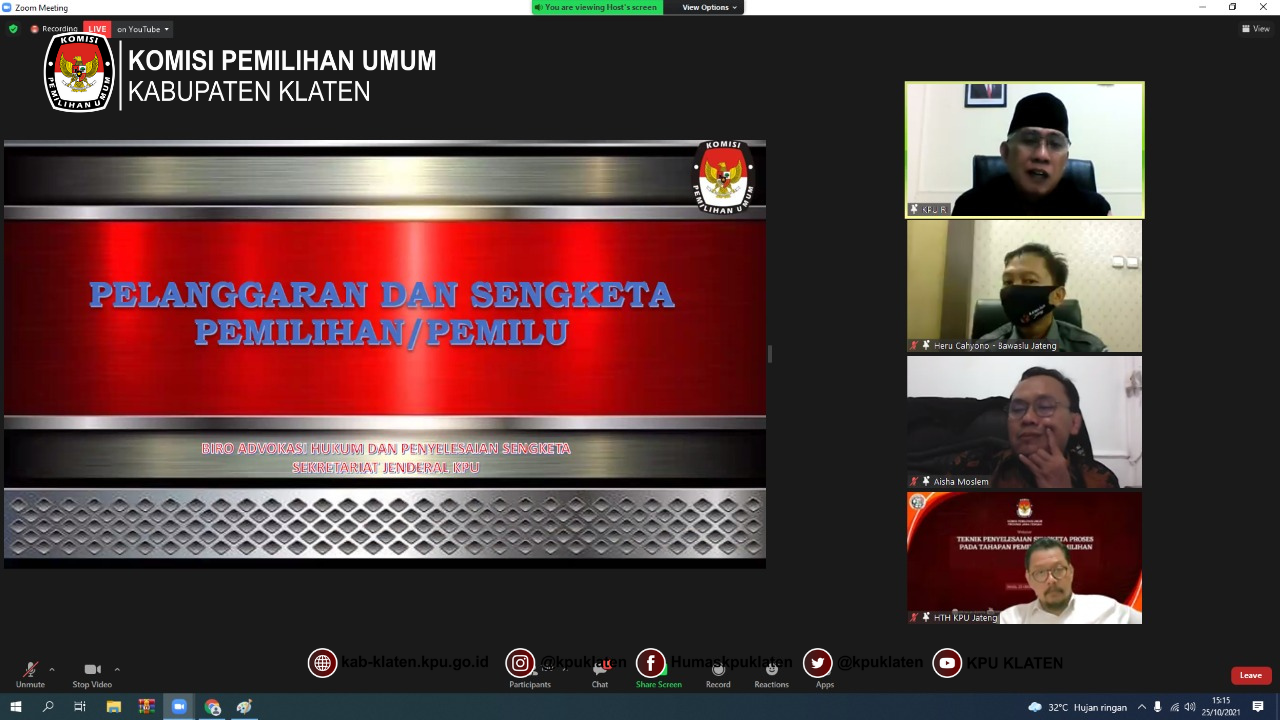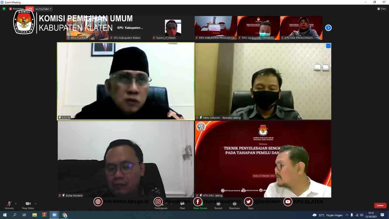 #SahabatPemilih Senin (25/10), KPU Kabupaten Klaten Mengikuti Webinar yang diselenggarakan oleh KPU Provinsi Jawa Tengah secara Darang, Kegiatan Webinar mengangkat tema "Teknik Penyelesaian Sengketa Proses Pada Tahapan Pemilu dan Pemilihan".