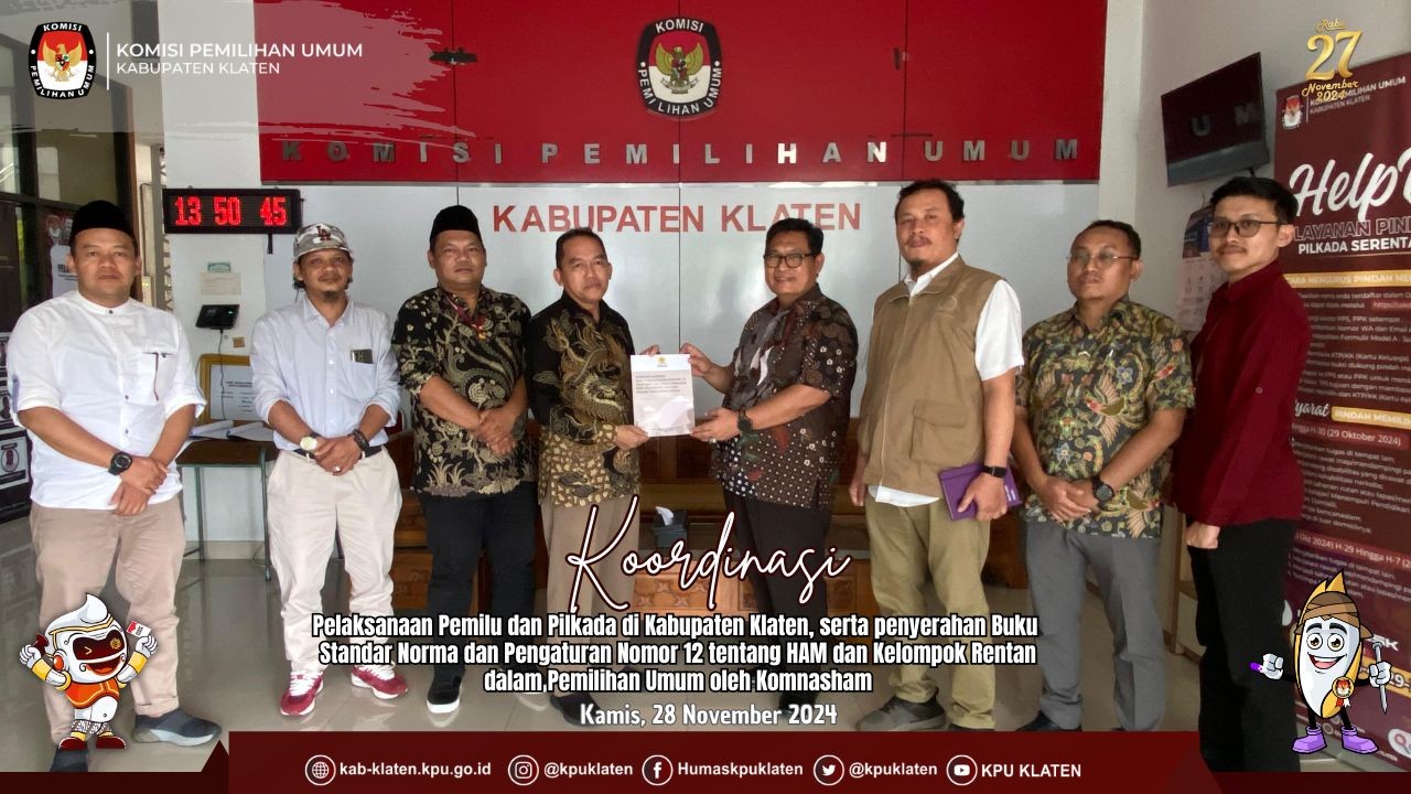 KLATEN - #TemanPemilih KPU Klaten memberikan penghargaan kepada pemenang Lomba KPU Menulis dengan tema Jika Aku Menjadi Bupati Klaten, Senin (25/11). Pemberian penghargaan ini diselenggarakan dalam rangkaian kegiatan KPU Bersholawat - Sosialisasi dan Do'a Bersama untuk Pemilihan Gubernur dan Wakil Gubernur Jawa Tengah serta Bupati dan Wakil Bupati Klaten Tahun 2024. Setidaknya ada tiga kategori pemenang, yaitu kategori Karya Terbaik, Karya Terfavorit, dan Karya Terpilih, dengan total hadiah sebesar Rp 8.500.000,-.