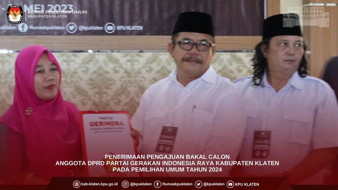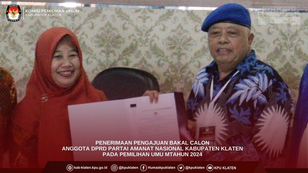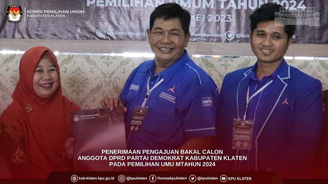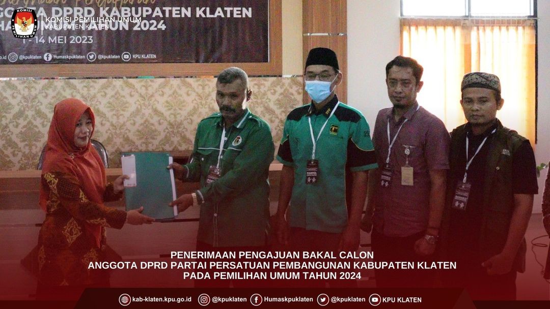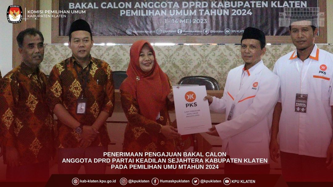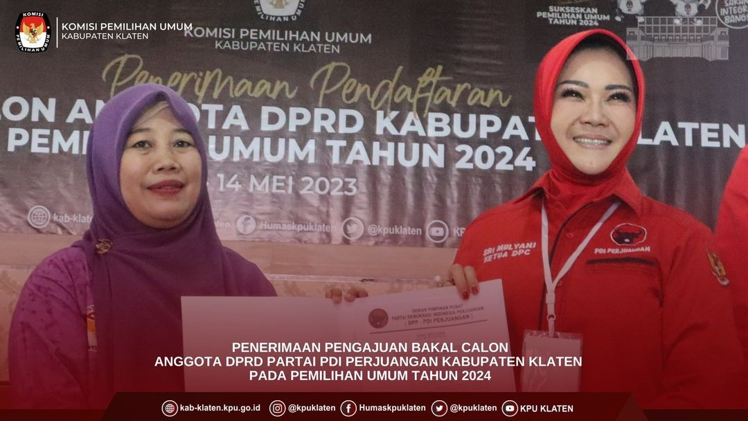 #TemanPemilih (11/05) KPU Kabupaten Klaten menerima pengajuan Bakal Calon Anggota DPRD Partai PDI Perjuangan Kabupaten Klaten dalam Pemilu Tahun 2024 di Kantor KPU Kabupaten Klaten. Pengajuan dilakukan oleh Ketua Dewan Pimpinan Cabang (DPC) Ibu Hj. SRI MULYANI, Sekretaris Bapak TA. AGUS RIYANTO beserta TIM dan Bakal Calon dari Partai PDI Perjuangan.