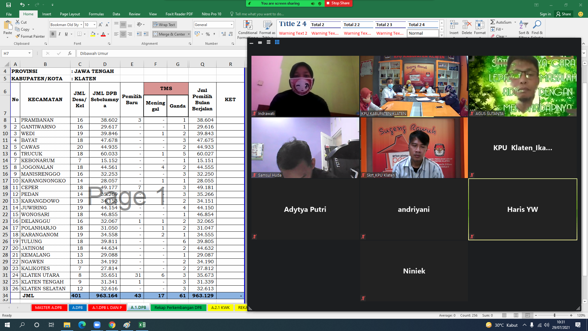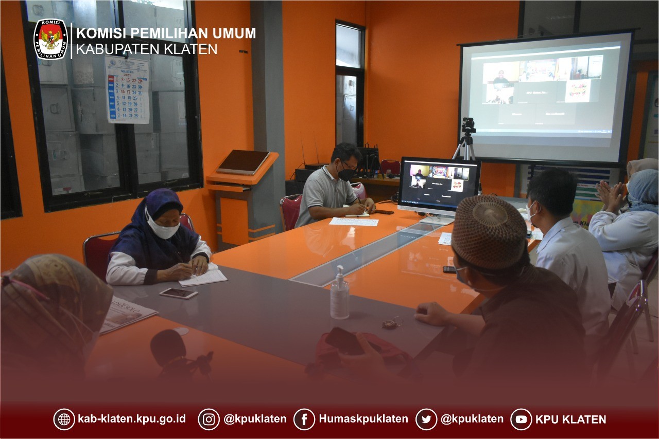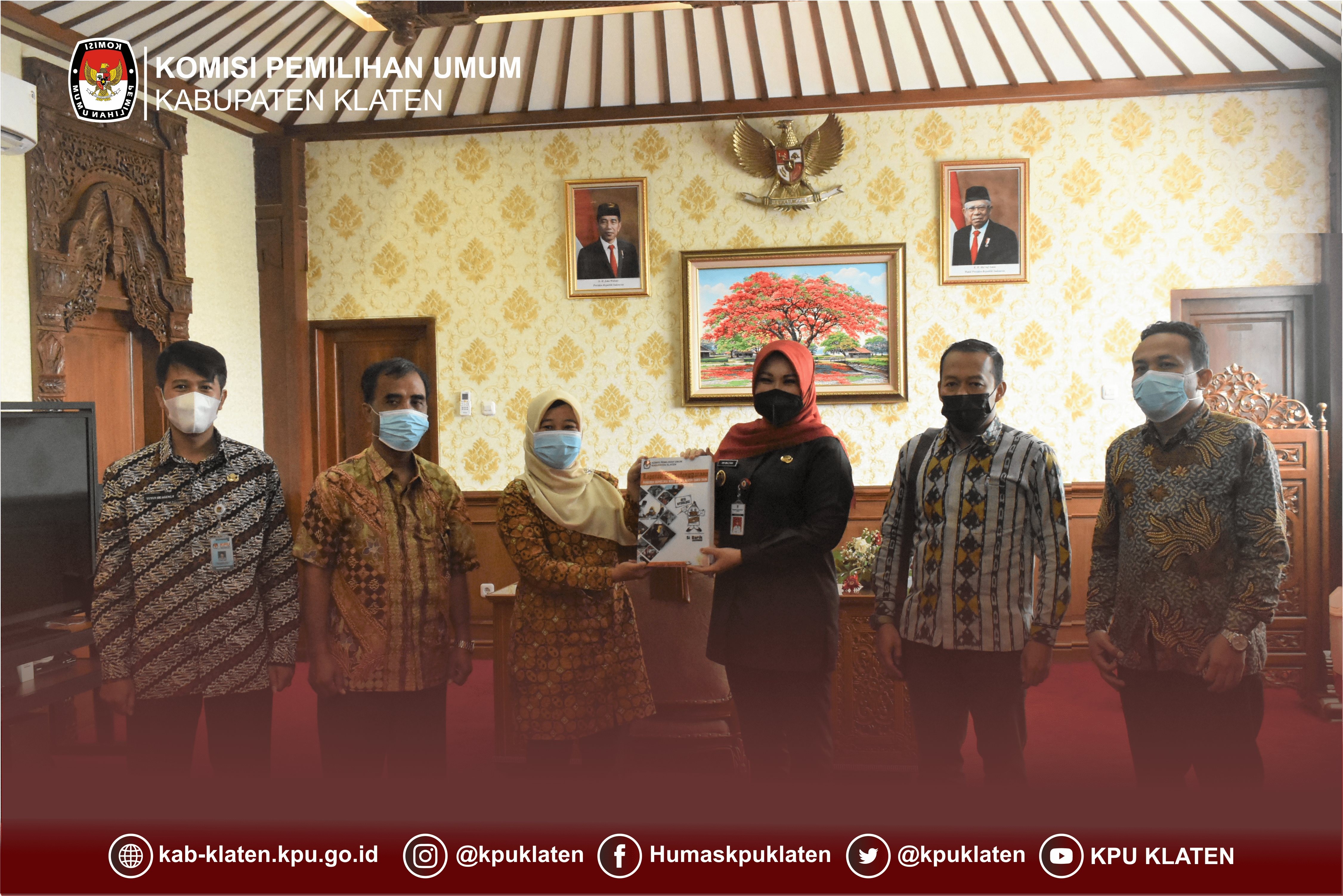 Bupati Klaten Hj. Sri Mulyani menerima audiensi KPU Kabupaten Klaten didampingi Kepala BPKD Klaten Bpk. Muh. Himawan .P, SSTP, MM, Kepala Kantor Kesbangpol Klaten Bpk. Dodhy Hermanu, SH dan (Plt) Kabag Humas Setda Klaten Bpk. Pandu Wirabangsa, SH, M.Eng.