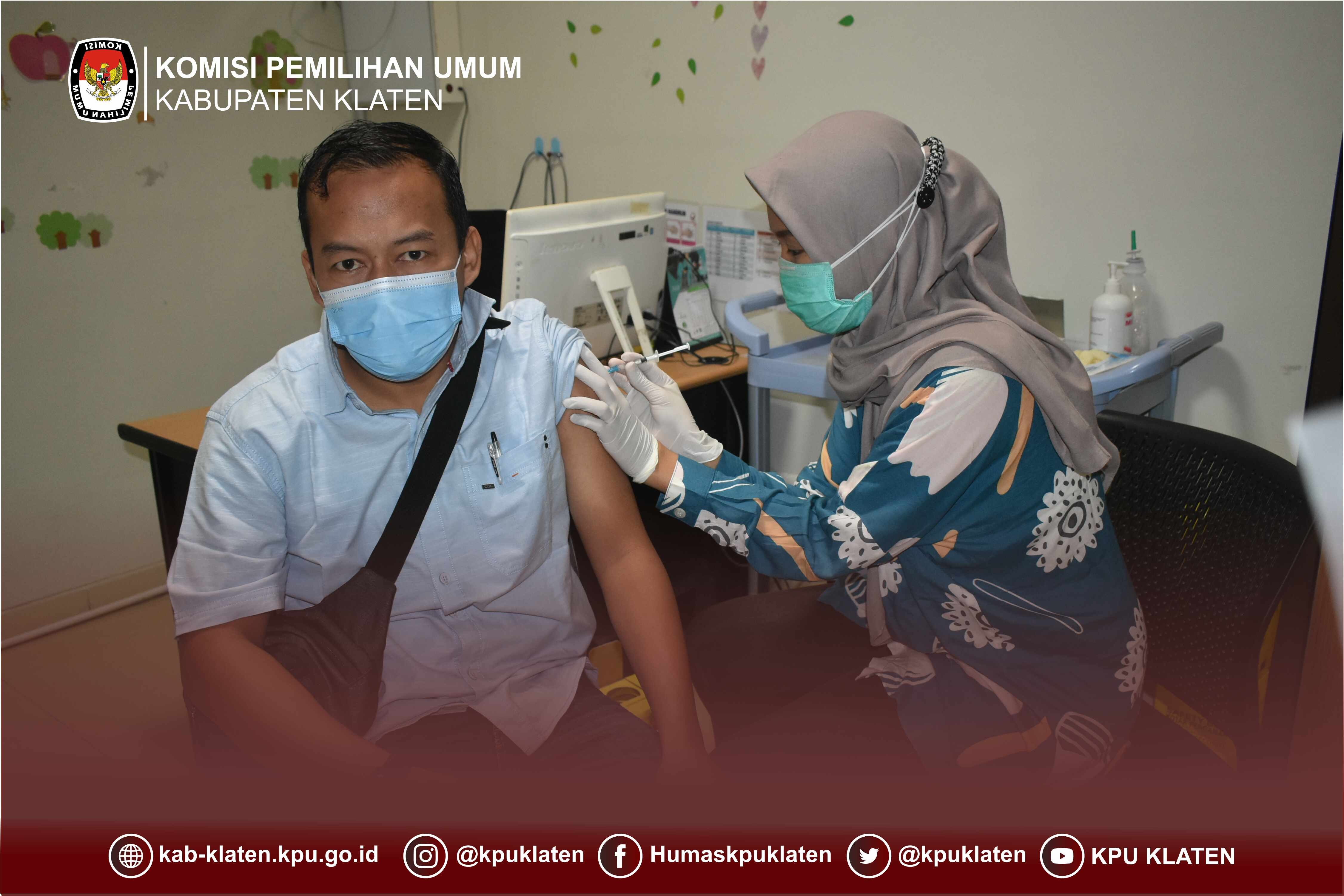 Komisioner, Sekretaris, dan seluruh staf KPU Kabupaten Klaten menerima suntikan vaksin Corona pertama di RSU Islam Klaten pada Selasa (27/4).