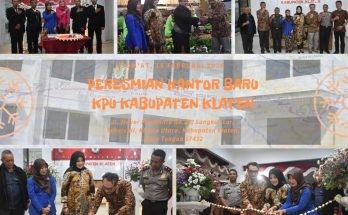 KLATEN – Bupati Klaten, Sri Mulyani bersama Ketua KPU Provinsi Jawa Tengah, Julianto Sudrajat, S.Sos, M.I.Kom meresmikan gedung baru KPU Kabupaten Klaten, Jum’at malam (15/2). Gedung KPU Kabupaten Klaten ini merupakan bentuk nyata dukungan Pemerintah Daerah Kabupaten Klaten sebagai upaya peningkatan kemampuan dan pelayanan kepada masyarakat, dalam penyelenggaraan Pemilihan Umum. Gedung yang beralamat di Jalan Mayor Kusmanto Nomor 25 ini terdiri dari 2 lantai, dengan luas tanah 1.100 meter persegi, luas bangunan 750 meter persegi, dengan status pinjam pakai.
