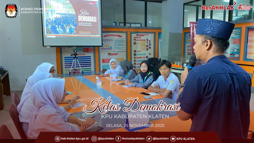 Jumat, 28 November 2025, bertempat di Kakung Sableng Bonjati, Ceper, Komisi Pemilihan Umum Kabupaten Klaten menyelenggarakan kegiatan Rapat Kerja Perencanaan Kegiatan Sosialisasi dan Pendidikan Pemilih Berkelanjutan dengan mengundang narasumber dari Bapperida, Kesbangpol, dan Kominfo Kabupaten Klaten. Rapat kerja dimulai pukul 13.00 WIB dengan acara pembukaan diawali dengan menyanyikan lagu kebangsaan Indonesia Raya. Setelah itu kegiatan dilanjutkan dengan sambutan dari Ketua KPU Kabupaten Klaten, Primus Supriono. Dalam sambutannya disampaikan bahwa perlu dilakukan analisis terhadap banyaknya surat suara tidak sah pada pemilihan yang telah berlalu. Disampaikan juga pada sambutannya bahwa KPU ingin mengajak masyarakat pada kegiatan sosialisasi pendidikan pemilih dengan mengundang kelompok elemen masyarakat. Primus Supriono berharap KPU Klaten selain sebagai organisasi nasional juga dapat berguna bagi daerah. Rapat kerja dilanjutkan dengan pemaparan materi oleh narasumber yang difasilitasi oleh Divisi Sosdiklihparmas & SDM KPU Kabupaten Klaten, Muhammad Ansori, S.Pd.I. Materi pertama tentang “Sinergi dan Dukungan Pemerintah Daerah Dalam Kegiatan Sosialisasi dan Pendidikan Pemilih Berkelanjutan” disampaikan oleh Pandu Wirabangsa, S.H., M.Si narasumber dari BAPPERIDA Kabupaten Klaten. Dalam materinya disampaikan terkait timeline perencanaan kegiatan pemerintah daerah, sinergitas kegiatan pemerintah daerah dengan KPU, urgensi pendidikan pemilih non tahapan pemilu, dukungan Bapperida dalam pelaksanaan pendidikan pemilih, serta teknis alokasi penganggaran hibah KPU Permendagri Nomor 77 Tahun 2020. Materi selanjutnya disampaikan oleh narasumber kedua yaitu Lilik Yunanto dari Badan Kesbangpol Kabupaten Klaten. Dalam materinya disampaikan kesanggupan Bakesbangpol untuk memfasilitasi dan melakukan monitoring terhadap penyaluran dana hibah kepada KPU. Lilik Yunanto juga meyampaikan perlu melibatkan instansi/OPD terkait untuk mencapai tujuan hibah KPU yang digunakan untuk meningkatkan kapasitas kelembagaan KPU. Materi ketiga tentang “Tingkatan Partisipasi Masyarakat Dalam Pesta Demokrasi Melalui Pendidikan Pemilih” disampaikan oleh narasumber terakhir yaitu Pinandita Bima Mahendra, S.T., M.Si., Kepala Bidang Komunikasi dan Statistik Dinas Kominfo Kabupaten Klaten. Dalam materinya disampaikan terkait pengguna internet dari tahun ke tahun di Kabupaten Klaten, dan media publikasi di pemerintah daerah Klaten, Kegiatan dilanjutkan dengan sesi diskusi dan tanya jawab. Sekretaris KPU Kaabupaten Klaten, Ika Nurmaliana Dewi menyampaikan masukan sekaligus pertanyaan kepada Bakesbangpol terkait Pemilos (Pemilihan Osis) yang diharapkan dapat dilaksanakan secara serentak se-Kabupaten Klaten, selanjutnya pertanyaan kepada Dinas Kominfo terkait lomba-lomba pembuatan video untuk menyosialisasikan pendidikan pemilih. Ketua KPU Kabupaten Klaten, Primus Supriono juga turut menyampaikan harapan bahwa KPU dapat dinilai sebagai Sekolah Demokrasi, selain itu Primus Supriono juga berharap untuk dapat bekerjasama dengan mengundang perwakilan dari Diskominfo untuk memberikan pembelajaran tentang penulisan berita, videografi, fotografi, dll dalam program Bu Menul dan Bu Kaji. Kegiatan Rapat Kerja Perencanaan Kegiatan Sosialisasi dan Pendidikan Pemilih Berkelanjutan selesai pukul 16.00 WIB.