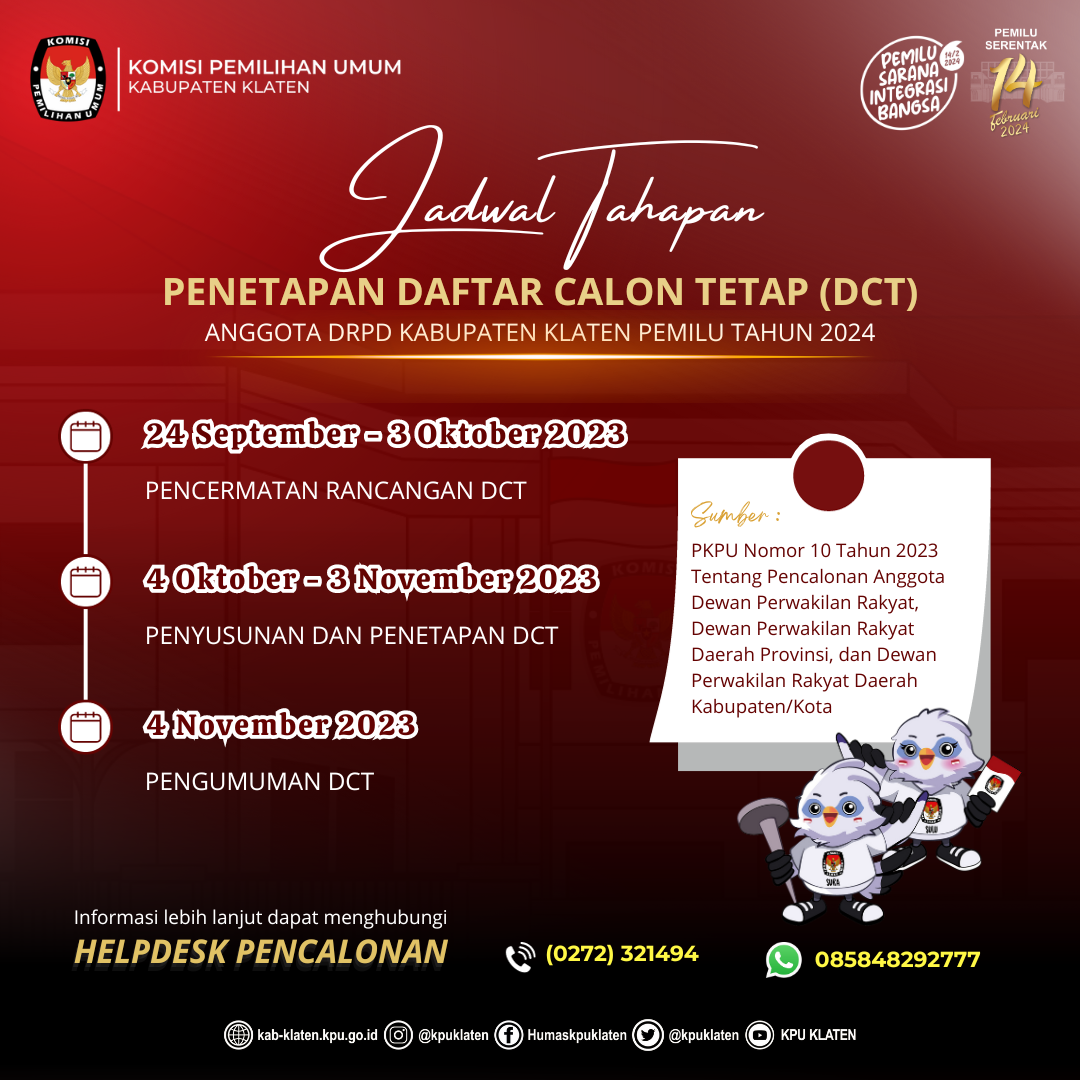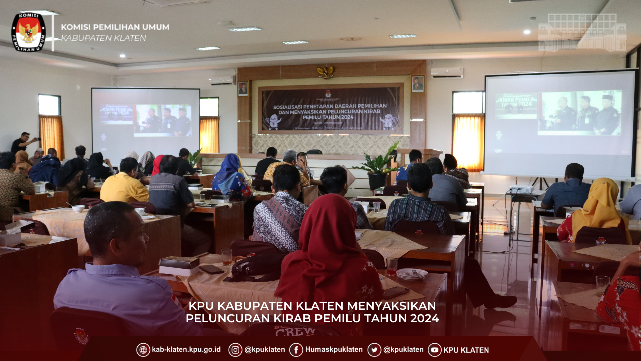 Klaten - Selasa (14/2) Kegiatan Sosialisasi Penetapan Daerah Pemilihan dan Menyaksikan Kirab Pemilu Tahun 2024 dilaksanakan pada hari Selasa, 14 Februari 2024 di Aula Kantor KPU Kabupaten Klaten.