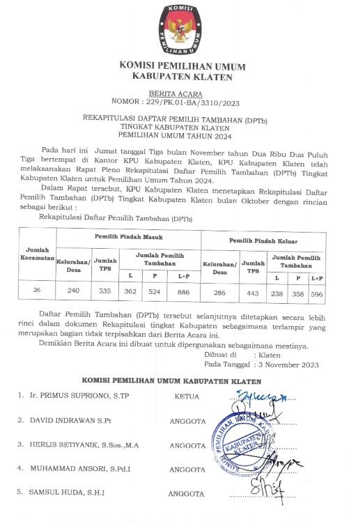 Perubahan Pejabat Administrasi dan Pejabat Fungsional di Lingkungan Sekretariat KPU Kabupaten Klaten