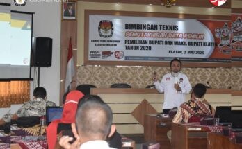 KLATEN – KPU Klaten menyelenggarakan Bimbingan Teknis Pemutakhiran Data Pemilih (Mutarlih) Pemilihan Bupati dan Wakil Bupati Klaten Tahun 2020 kepada 26 anggota Panitia Pemmilihan Kecamatan Divisi Pemutakhiran Data Pemilih, Kamis (2/7). Bimtek diisi oleh 2 pemateri, yaitu Komisioner KPU Klaten divisi Pemutakhiran Data Pemilih (Mutarlih), Sayamsul Ma’arif, S.Pd.I., dan Ketua Bawaslu Kabupaten Klaten, Arif Fatkhurrohman, SH.