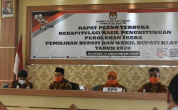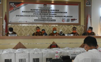 Selasa (15/12) KPU Kabupaten Klaten menggelar Rapat Pleno Terbuka Reakapitulasi Penghitungan Hasil Perolehan Suara Pemilihan Bupati dan Wakil Bupati Klaten Tahun 2020 tingkat Kabupaten.