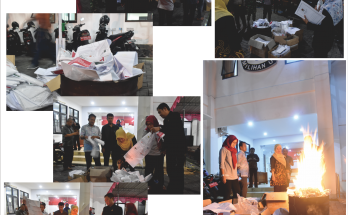 KLATEN – Bertempat di Halaman Kantor Komisi Pemilihan Umum Kabupaten Klaten, Jalan mayor Kusmanto Nomor 25 Sekarsulu, Klaten Utara KPU Kabupaten Klaten memusnahkan Logistik Suarat Suara yang Rusak, Cacat, dan/atau kelebihan, dengan disaksikan oleh Polres Kabupaten Klaten dan Bawaslu Kabupatn Klaten, Selasa (16/4).