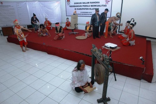 Acara tersebut diawali dengan happening art yang melibatkan seniman Klaten. Yang menjadi peserta adalah Partai Politik, Organisasi Sayap Partai Politik, Tokoh Agama, Tokoh Masyarakat, Kelompok pemilih pemula dan terpelajar, Kelompok Perempuan, Kelompok defable, Kelompok Masyarakat (Ormas; LSM, Organisasi Profesi, Kelompok Tani, Pengusaha, dan lain-lain), Kelompok masyarakat marginal, Relawan Demokrasi (Relasi) dan Pers.