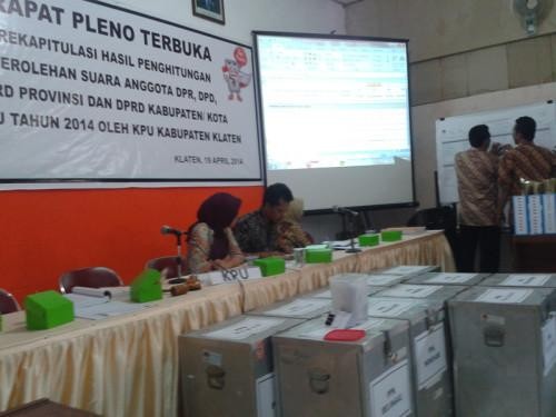 KLATEN – KPU Kabupaten Klaten telah menyelesaikan Rapat Pleno Terbuka Rekapitulasi Hasil Penghitungan Suara Pemilu Anggota DPR, DPD dan DPRD, Sabtu (19/4) hingga Minggu (20/4) pagi. Meski rapat digelar secara maraton, namun pelaksanaan rapat dapat berjalan dengan lancar dan sukses.