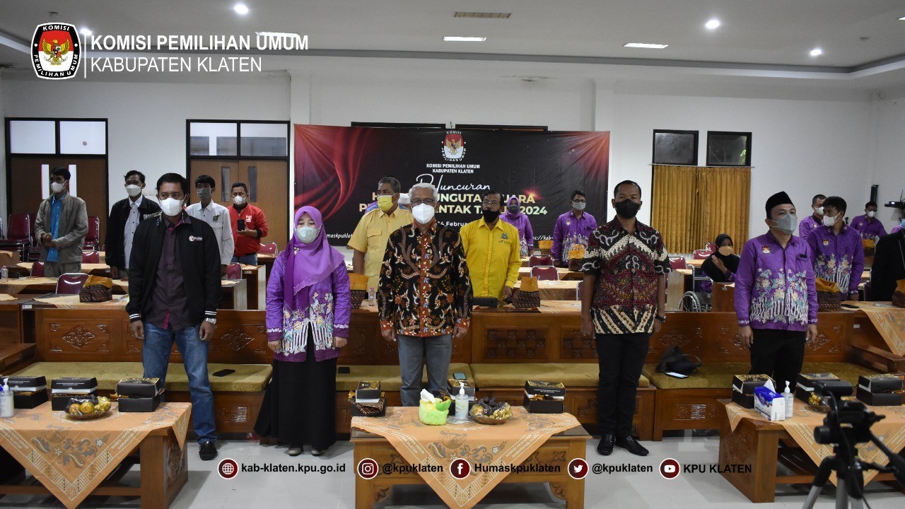 Klaten - Senin (14/2) Komisi Pemilihan Umum Kabupaten Klaten Mengikuti Kegiatan Nonton bersama Peluncuran Hari Pemungutan Suara Pemilu 2024, mengundang Forkopimda, Instansi Terskait dan Partai Politik. Kegiatan Nonton bersama Peluncuran Hari Pemungutan Suara Pemilu 2024 dilaksanakan di Aula KPU Kabupaten Klaten.